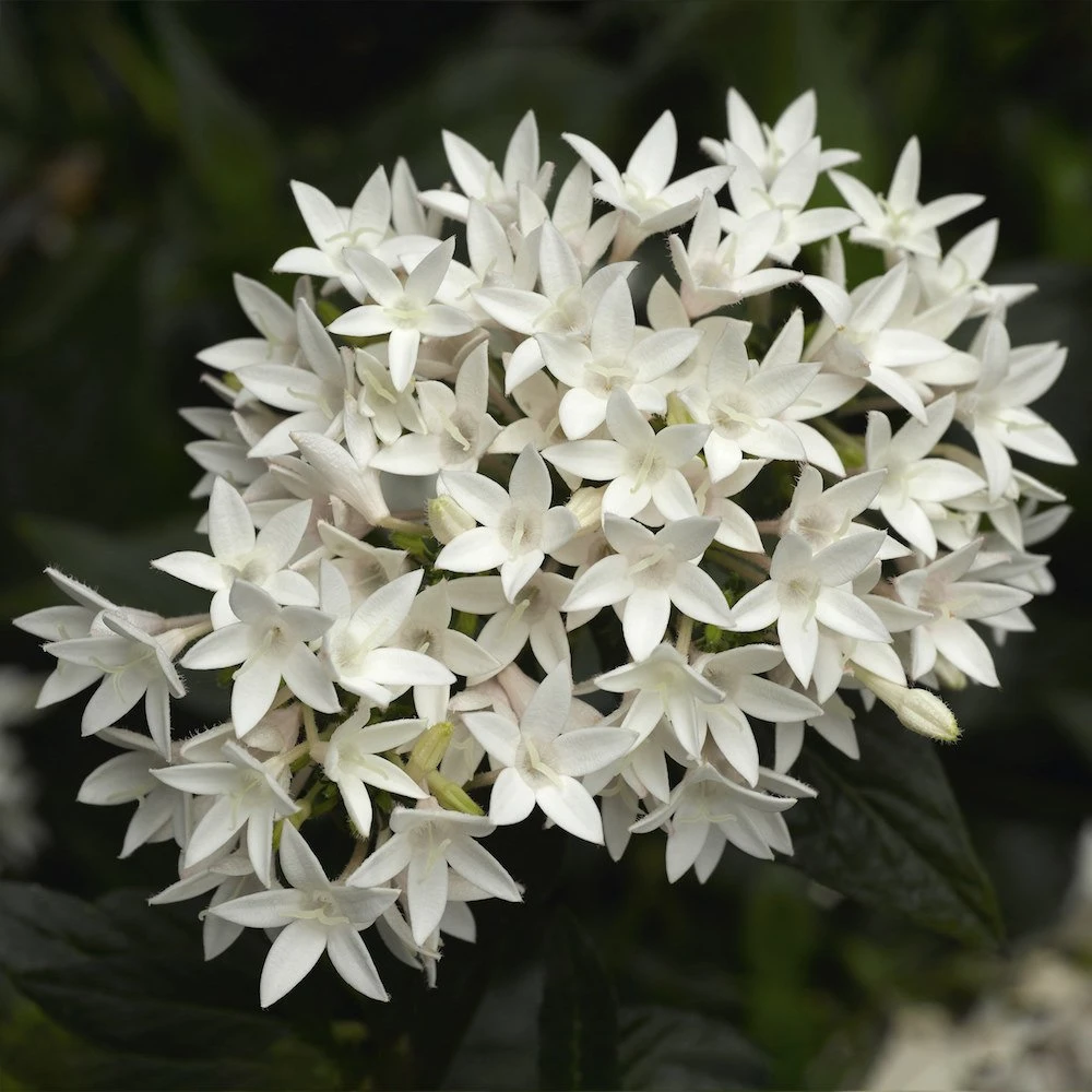 Falling Star⢠White Pentas Plants bring large clusters of delicate, white, star shaped flowers that almost sparkle as they spill out of their containers. These are the first trailing pentas, making them ideal for hanging baskets and containers. Heat tolerant and easy care, simply give them a full sun location and watch as the butterflies and hummingbirds visit all season long. This is one falling star that everyone wants to catch!