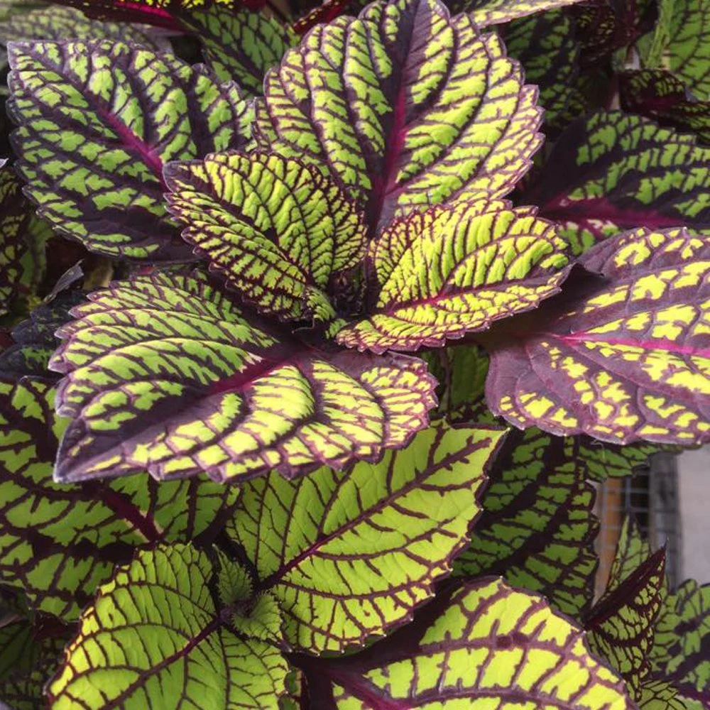 Fishnet Stockings Coleus Plants feature broad green leaves with a wonderfully intricate veining pattern in deep purple. It’s an absolutely striking combination! Coleus grows best in moist, well-drained soil.
