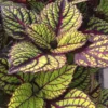 India Frills Coleus Plant has tiny, finely edged lime-green leaves with splashes of orange, pink and purple. This is a very low carpet coleus that does best in part shade, whether hanging in baskets or mounded in beds.
